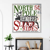 North Pole Reindeer Sleigh Rides Farmhouse Decor Wall Art